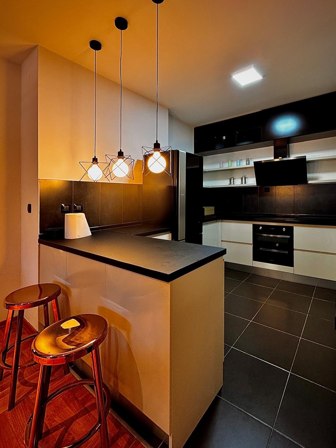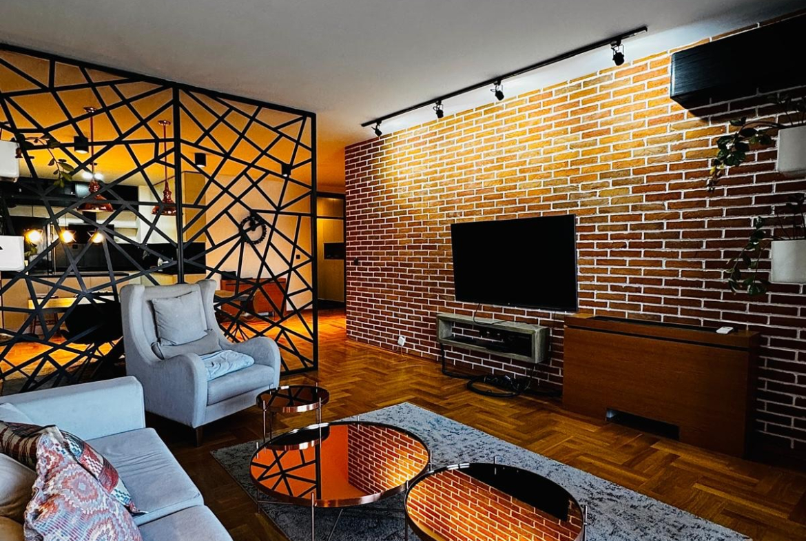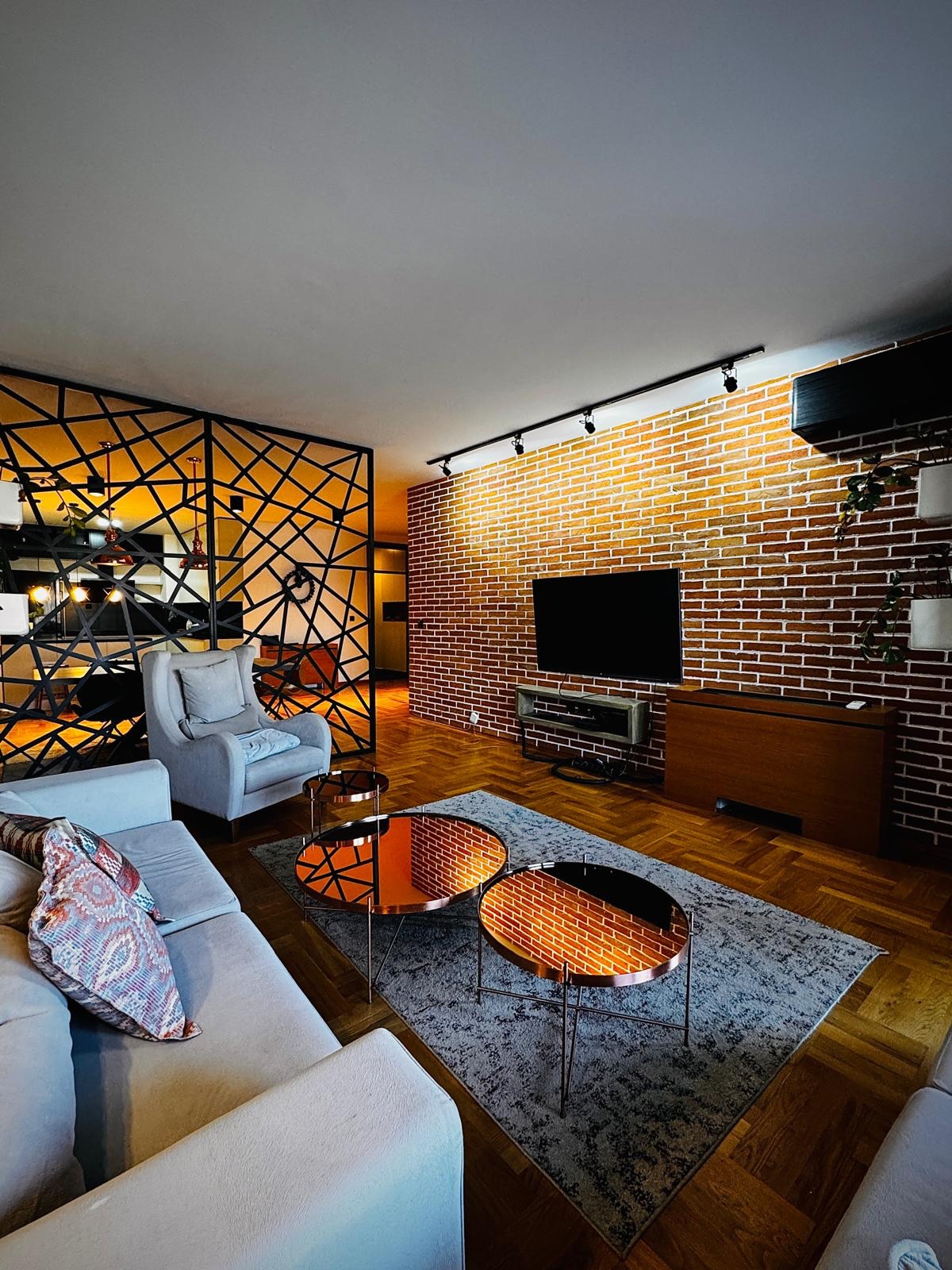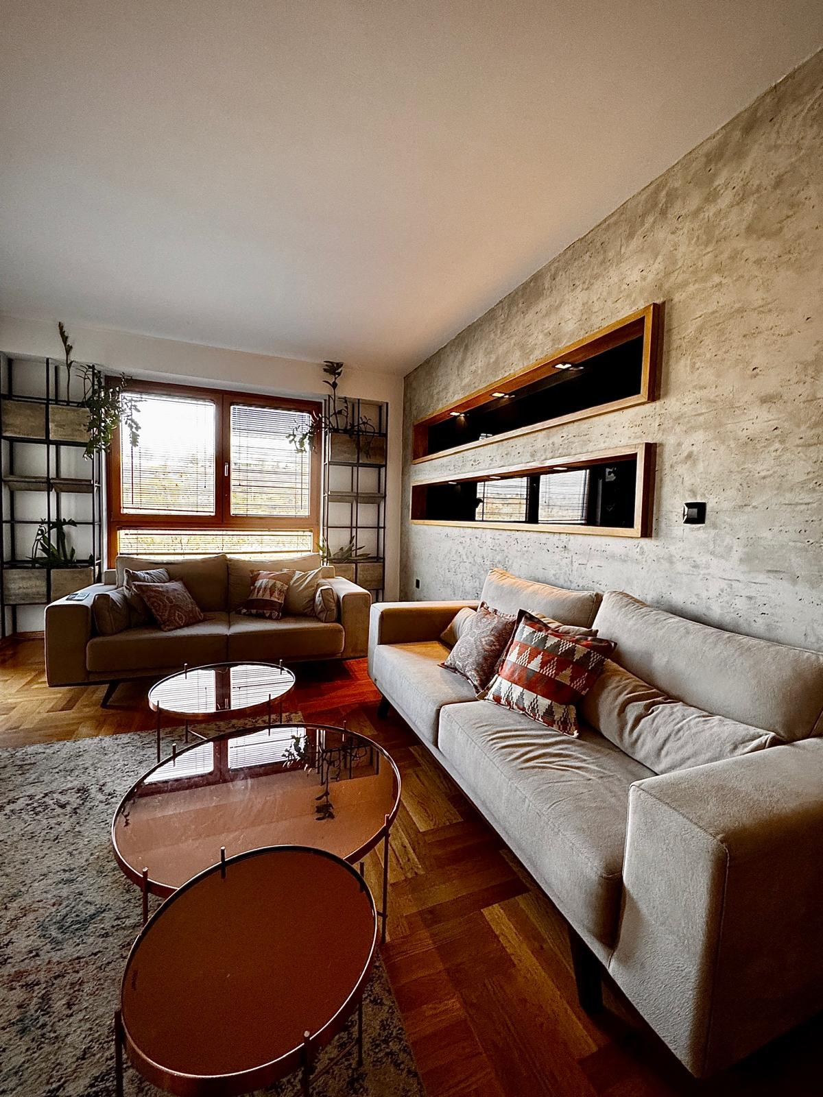 An exclusive luxury apartment of 125 m² is available for rent on the 3rd floor in the Park Residence complex, offering a beautiful view of the Vardar River quay.